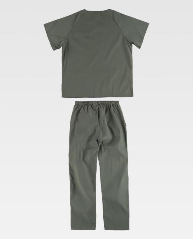 Casaca de manga corta. Cuello a pico. Aberturas laterales. Un bolsillo en pecho de plastón. Dos bolsillos laterales de plastón. Un bolsillo para bolígrafos. Pantalón con elástico y cordón en la cintura. Dos bolsillos laterales.Composición80% Poliéster 20% AlgodónGramaje150